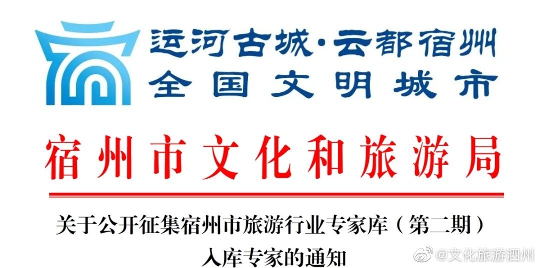 各縣(區(qū))文化和旅游局,各重點(diǎn)旅游景區(qū)、星級(jí)飯店、旅行社,宿州市博物館、市文物管理所,宿州學(xué)院、宿州職業(yè)技術(shù)學(xué)院等大中專院校: 自2019年以來,宿州市旅游行業(yè)專家?guī)欤ǖ谝黄冢┤霂鞂<覈?..